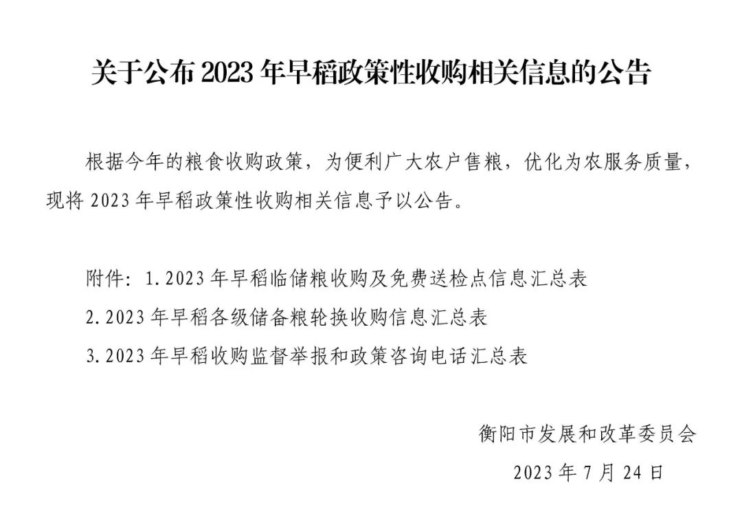 關(guān)于公布2023年早稻政策性收購(gòu)相關(guān)信息的公告
