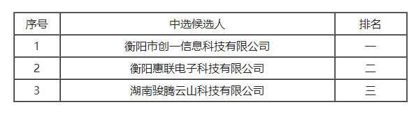 衡糧集團OA協(xié)同辦公系統(tǒng)采購(比選編號BX-013)于2024年8月19日上午9點30分(北京時間)進行了比選活動。本項目采用“綜合評分法”,經(jīng)評審小組綜合評審,現(xiàn)將中選候選人排名結(jié)果公示如下: