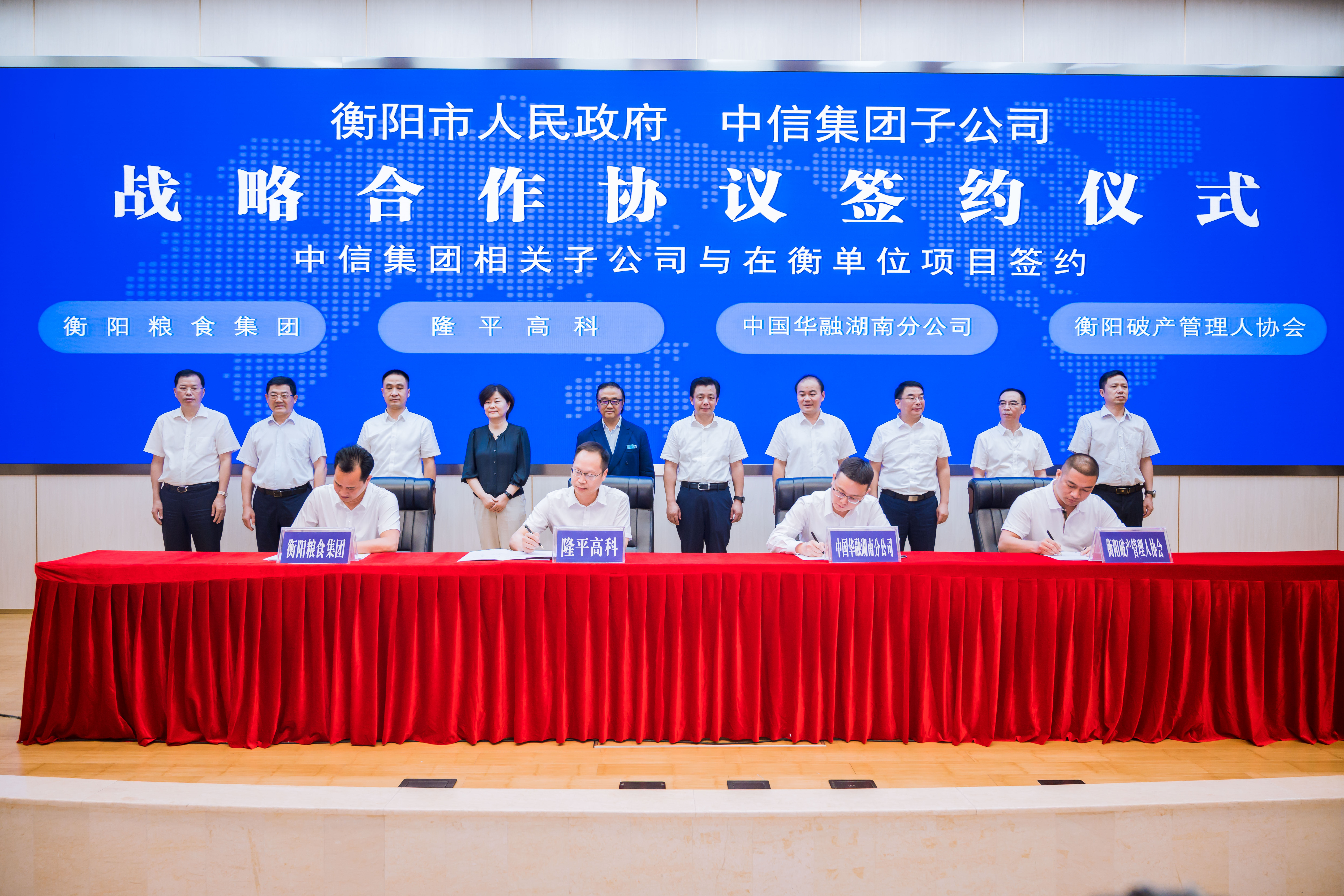 9月8日下午,衡陽市人民政府與中信集團在湘子公司戰(zhàn)略合作協(xié)議簽約儀式在市委一號樓舉行。省政府副省長、衡陽市委書記秦國文出席簽約儀式,中信集團業(yè)務協(xié)同部總經(jīng)理蘇國新,市委副書記、市長朱健分別致辭,市委常委、常務副市長于新凡等領導共同見證簽約。衡陽糧食集團有限責任公司黨委書記、董事長陳廷與袁隆平農(nóng)業(yè)高科技股份有限公司(以下簡稱“隆平高科”)副董事長袁定江就“種糧研儲項目”現(xiàn)場簽訂了合作框架協(xié)議,共同打造衡陽糧油科技產(chǎn)業(yè)園之種糧研儲平臺。
